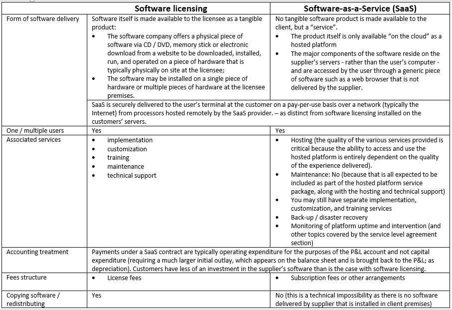 A comparison between Cloud software (SaaS) and classical Software licensing: